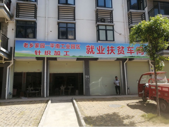 农户们入住了老乡家园,但仍有一部分家庭仍未实现脱贫。如何帮助民众在安置区内“住的稳”,在新环境中“谋发展”也成为了一项巨大挑战。为此,社区在老乡家园内设立了扶贫车间项目(包括一个针织车间,两个数据线加工车间)。针织扶贫车间可以给无经验的职工提供学习机会。一般晚上六七点下班,如家中有设备条件,支持职工将材料带回家中继续工作。数据线车间的工人一天可挣140-200元,但据数据线车间管理员反映:车间工钱按件计,且无固定上班时间,有些工人比较懒惰,时常懈怠工作。从小区内的保洁阿姨处得知,社区内只有针织车间是日常开放的,剩下两个车间开放工作的次数相对较少。