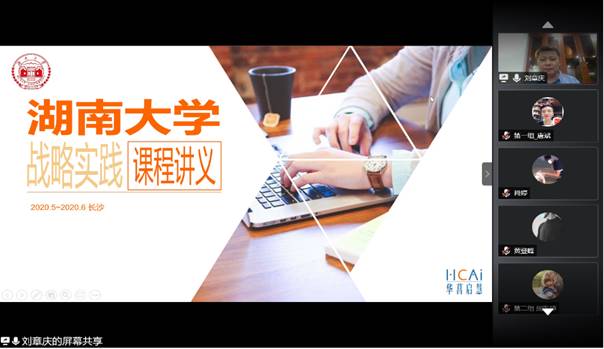 经济与贸易学院、金融与统计学院和工商管理学院的本科生和硕士生。疫情期间,刘章庆博士采取“云授课+分组行动教学”的授课方式将传统教学与企业实践紧密结合,以他在华为丰富的战略设计与执行经验为同学们细致介绍了BLM战略领导模型的主要内容。为了让学生更好的理解教学内容,刘章庆博士将学员精心分成四个小组,在企业导师“一对一”全程指导下进行模拟实战。通过实战演练与互动交流,学员们纷纷表示对教学内容有了更加深刻的理解,并十分期待对后续课程的深入学习,希望能够通过“战”与“学”相结合,将理论更好地运用于实践。
