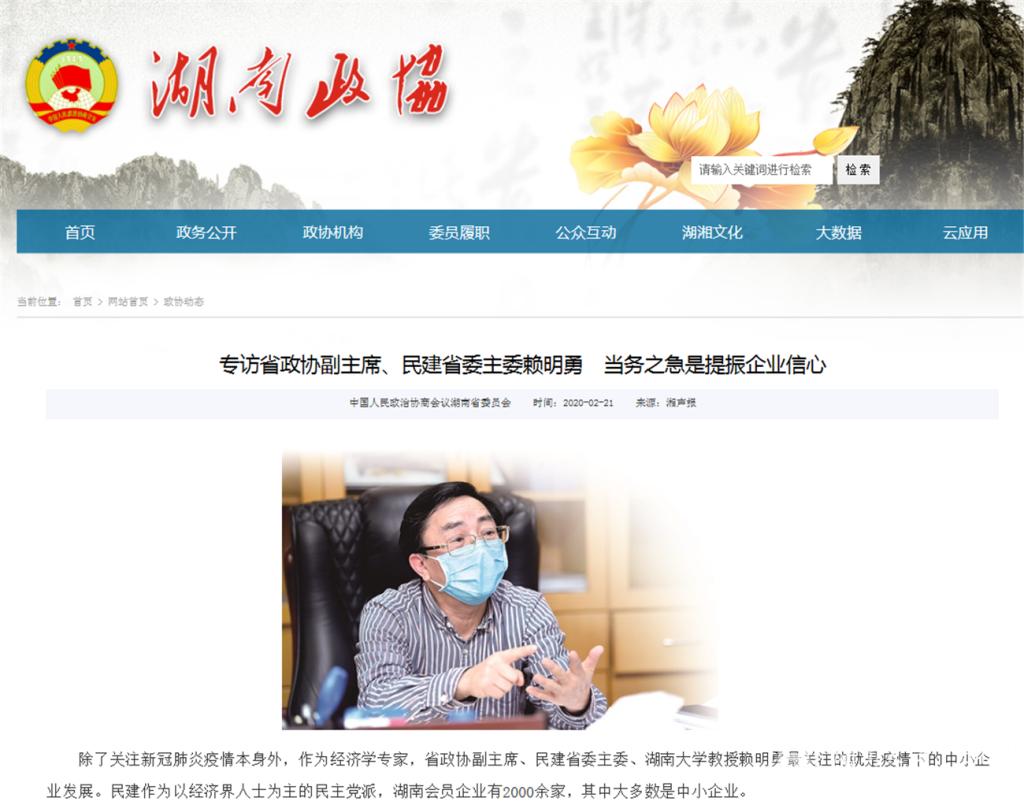 湖南省政协副主席、经济与贸易学院教授赖明勇在湘声头条上发表文章《恢复企业当务之急是提振信心》写到:“疫情只是突发事件,中国依然处于欣欣向荣的上升时期,尽管当前遇到了一些爬坡越坎的困难,但无法阻挡历史前进的车轮。”