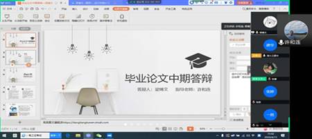 为确保本科毕业生的毕业论文环节不因疫情而受影响,督促检查论文撰写进度,4月9-16日期间,经济与贸易学院对2016级233名毕业生的毕业论文分为13个小组,采取线上答辩,交互审查等多种形式毕业论文中期检查。例如,4月15日下午,19名本科生正在线上进行毕业论文中期检查的线上云答辩,经贸院院长许和连教授等4位答辩老师检查了毕业论文的进度,对提交的论文初稿提出了很多的修改意见,对同学们在论文撰写过程中遇到的困难提出了解决方案。