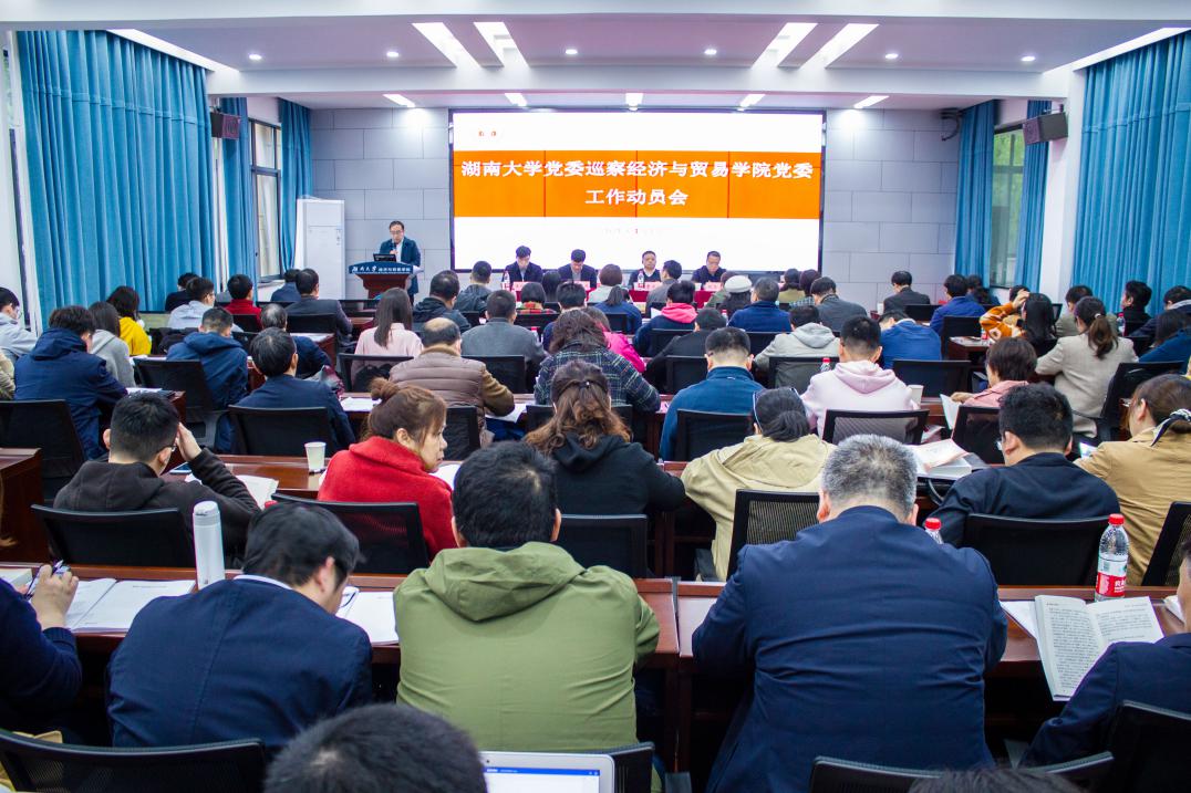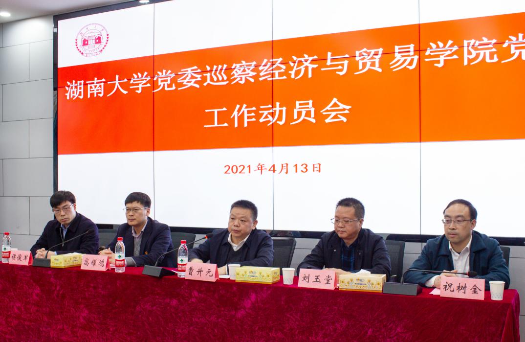 党委巡察经济与贸易学院工作动员会在经贸大楼201会议室举行。学校党委常委、副书记、纪委书记曹升元、校党委巡察办公室主任高耀鸿、校党委第五轮巡察第四巡察组组长刘玉堂及巡察组成员一行六人、学院党政领导班子成员、学院全体教职员工参加会议。会议由学院院长侯俊军主持。