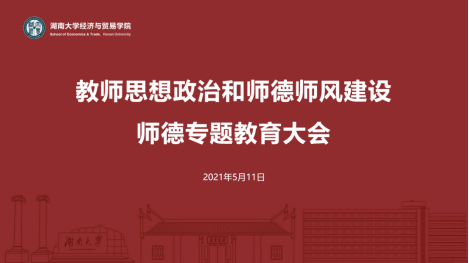 在经贸大楼201会议室召开全院大会,党委书记祝树金传达了教育部召开的教师思想政治和师德师风建设经验交流暨师德专题教育启动部署会的内容,集中学习了教育部党组书记、部长陈宝生在部署会上的讲话精神。