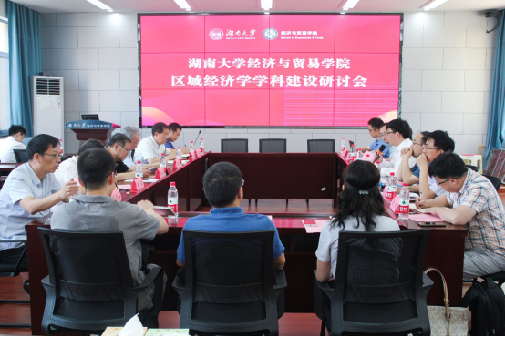 经济与贸易学院区域经济学学科建设研讨会在经贸大楼召开。南开大学安虎森教授、中国人民大学孙久文教授、中国科学院金凤君研究员、北京大学薛领教授、武汉大学吴传清教授及复旦大学范剑勇教授应邀出席研讨,经济与贸易学院院长侯俊军、党委书记祝树金及部分学科教师参加会议。会议由院长侯俊军主持。