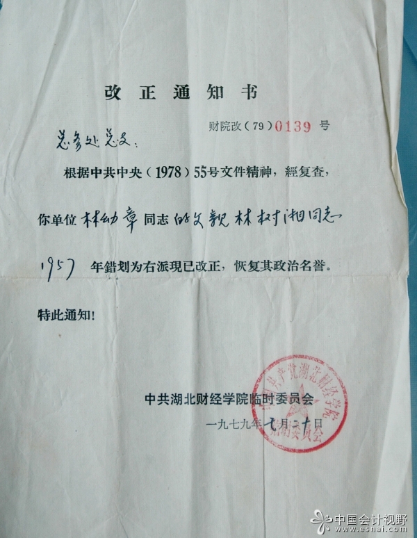 以下为林树湘先生聘书、往来书信及1979年平反改正通知书(林树湘先生于1976年因病去世)。