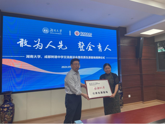 近日,经济与贸易学院院长、四川招生组组长祝树金带队,与学院副院长曹二保、学院党委副书记李曼、副教授杨湘黔、学工办主任蔡婕萍一行前往四川教育考试院、成都市和绵阳市5所高中学校开展“名师进中学”系列专题活动,与成都市树德中学、四川师范大学附属中学、绵阳中学、绵阳南山实验学校就优质生源基地进行授牌。