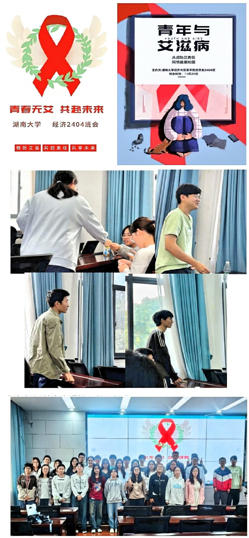 为加强班级建设,提高班级凝聚力,同时为同学们提供准确的艾滋病知识,促进同学们对艾滋病的关注,帮助同学们了解艾滋病的传播途径、预防措施和治疗方法,减少感染风险,11月13日下午2点种,经济2404防艾滋主题班会在经济与贸易学院行政楼201展开。经济2404班长许澜蓝担任主持与宣讲工作。