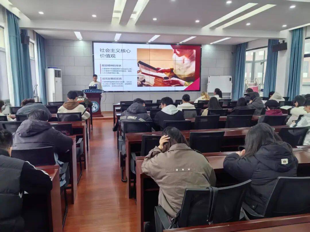2025年2月25日,经济2401班红鹰志愿宣讲团在经济与贸易学院行政楼201进行宣讲,经济2401班同学参与会议。班主任潘郭钦老师参加。