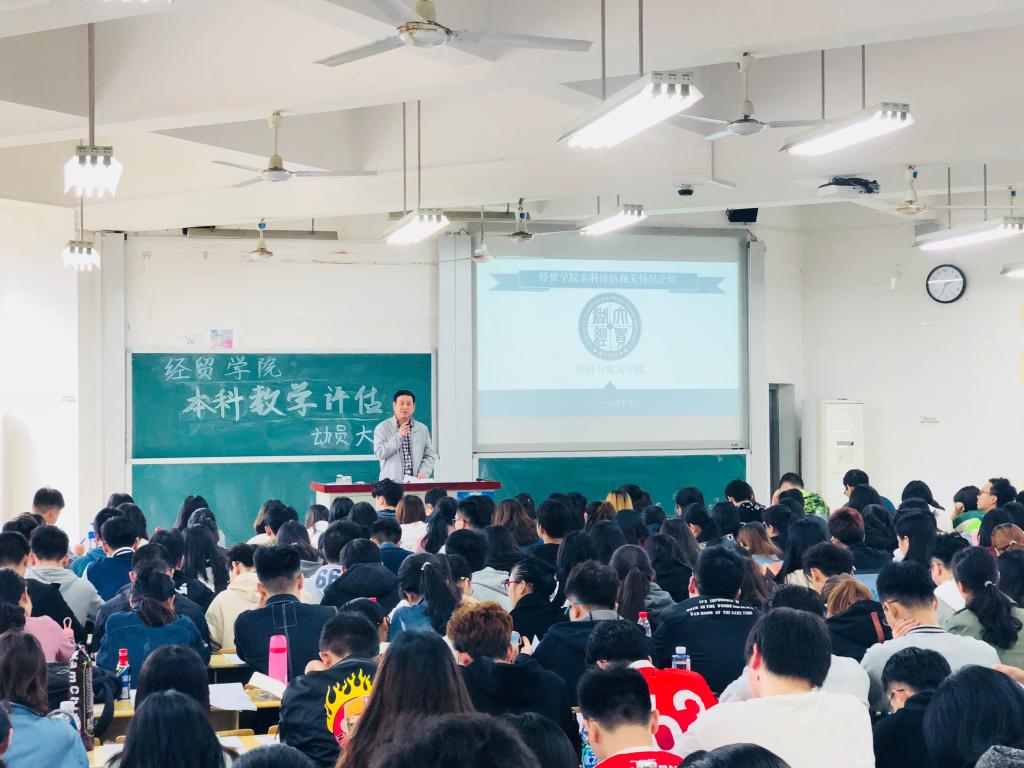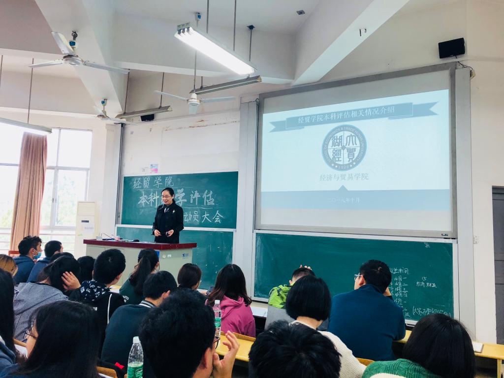2018年10月16日下午两点半,为更好的迎接本科教学审核评估工作,经济与贸易学院在财院校区第二教学楼501召开本科教学评估动员大会,到会的嘉宾有经济与贸易学院党委书记郭平教授,党委副书记谢树玉老师,学工办主任李曼老师,2016级辅导员蔡婕萍老师,参加本次会议的有2015级和2016级本科所有同学。