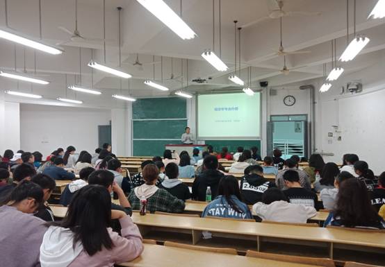 经济与贸易学院专业介绍会在二教402,405召开。本次介绍会主讲人是国际经济与贸易系主任钱晓英老师,财政税务系系主任谭光荣老师,经济学系主任刘志忠老师。