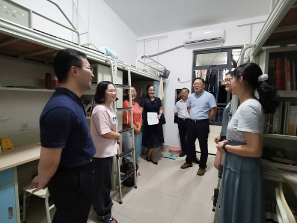 近日,学院2019级本科生返校后新迁了宿舍,学院领导、老师对同学们新宿舍的搬迁成果进行了走访,就同学们在新宿舍的生活适应情况亲切询问。对于即将进行的各门考试,老师嘱咐同学们要合理规划时间,做好复习工作,保持良好心态;对于在校期间遇到的任何问题,同学们都可以积极与老师沟通,争取早日解决。