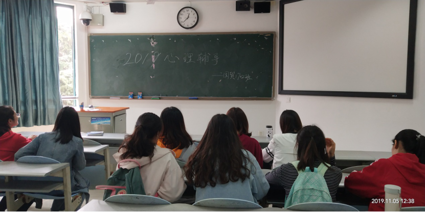 2019115日星期二中午12点钟左右,在心理委员和其他班委的组织之下,国贸1702班的各位同学陆陆续续来到了财院校区的水上教学楼事先借好的教室中,就在同学们有说有笑的活跃氛围中,我们班级于2019年秋季学期的团体辅导活动就这样拉开了序幕。