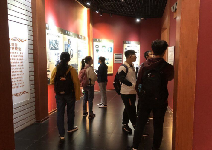 首先,同学们来到了陈列展览馆。陈列室中不乏许多革命先烈的照片和资料,展牌里记录着在中华民族的危机关头,同学们对以毛泽东、蔡和森和萧子升为主的一批热血青年创立新民学会的过程十分感兴趣。新民学会作为建党先声,激励着许许多多的仁人志士寻求救亡图存的道路,在历史上留下了浓墨重彩的一笔。同学们无不被这种爱国的豪情壮志所打动和振奋,不时思考着、交流着,分享着自己的心得体会。