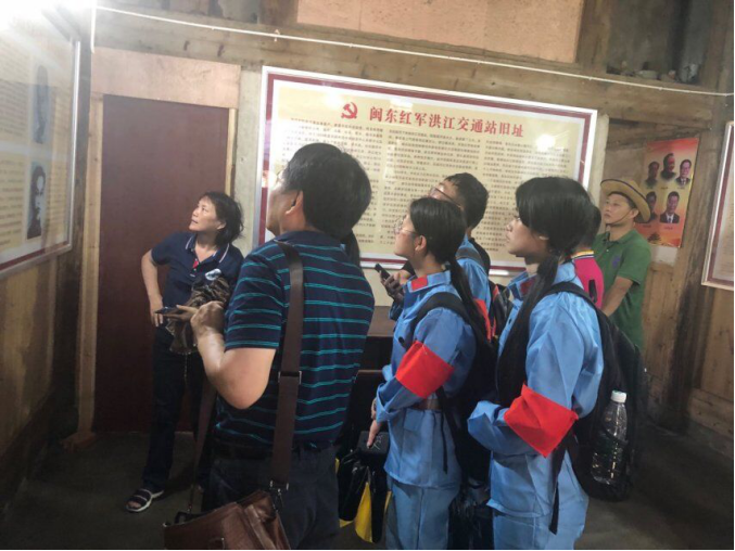 随后,团队成员们来到了闽东红军洪江交通站旧址。在讲解中成员们了解到,洪江交通站在1933年年底成立之后,为革命根据地运送医疗物品、器械、武器弹药和生活必需品,有利地支持了闽东苏区的巩固和发展。洪江交通站的房屋结构十分特殊,四周都看似被墙砖阻挡但都由隐藏的出口,这是为了方便红军及时撤离,躲避敌对势力对革命的欺压。交通站在1935年春天,还接收了患上重病的曾志同志,交通站负责人林元发和他的妻子一直悉心地照料曾志同志直到一星期后曾志同志被转移到另一个交通站。