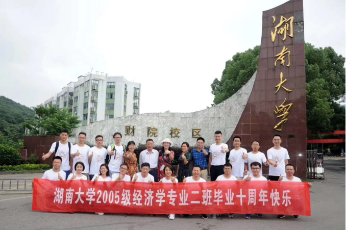 上午10:40,2005级经济学2班毕业十年师生座谈会在行政楼617进行,2005级辅导员周梦老师、原主管学生工作副书记高近成老师、王良健教授、罗丽英老师、钱晓英老师和本科低年级学生代表出席会议。座谈会在同学们自制的一个小视频中拉开序幕,大家感叹着十年间各自的变化,也分享着相聚的喜悦。全班32位同学共来自30个省市地区,毕业后又各奔东西,这次能有18名同学赶回相聚实属不易。到场同学依次做个人情况介绍,同时表达自己对学院、恩师和同学的祝福。作为2005级辅导员,周梦老师与同学们回忆了过去发生的点点滴滴;王良健教授、罗丽英老师、钱晓英老师也纷纷谈起往事。高近成老师则以过来人身份向同学们寄托自己的诚挚祝愿,希望同学自信乐观、身体健康、工作顺利,并且常回学院看看。同学们深受感动。现场有校友提出以班级名义建立学院奖学金,用以资助奖励本院学生,帮助学生成长成才。随后同学们与老师们共进午餐,并集体前往岳麓书院进行参观。