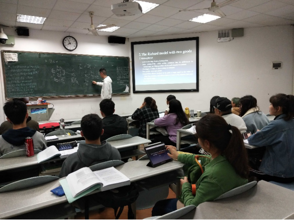 经过前期的筹备之后,4月2号,本学期第一节同伴课堂在水教307拉开了序幕。王子方同学根据《国际经济学》上课内容自己制作了PPT,梳理总结了第四章即李嘉图模型的知识点,并结合课后习题让同学们能够更深刻地掌握难点、重点。课堂上小老师在讲课的同时时刻关注同学们的表情,对比较难的知识点重复讲解与同学们也互动密切让大家的问题可以及时解决。同学们聚精会神地听课、写笔记、做练习,遇到自己不懂的也会当场提出。课后,小老师表示通过认真的备课,发现自己的一些问题也加深了对知识点的掌握,对自己的学习很有帮助。同学们纷纷对小老师表示感谢,通过小老师的整理让学习内容更系统化也解决了自己课上的疑问。关键在于小老师用易于理解的话语让生涩的知识点变得简单、易懂。