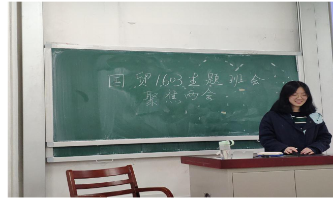 2019年4月2日15时,为进一步加强思想政治学习,提升青年大学生思想觉悟,鼓励同学关注时事热点,将理论与政策将结合,学以致用。国贸1603班在二教302成功召开“聚焦两会”主题班会,本次班会由团支书赖靖怡、班长杜永芳主持,全班共26名同学参加。