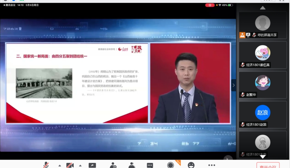 为深入贯彻落实习近平总书记关于深化思想政治理论课改革创新和“大思政课”的重要指示批示精神,经济与贸易学院2018级全体班级于2021年5月9日下午两点,通过线上集中学习或线下分散学习等方式共同观看此次思政大课。