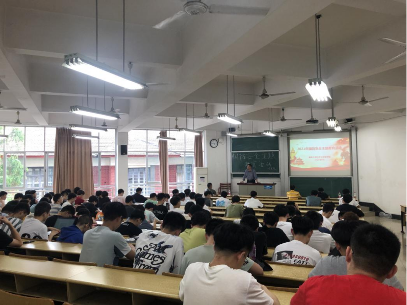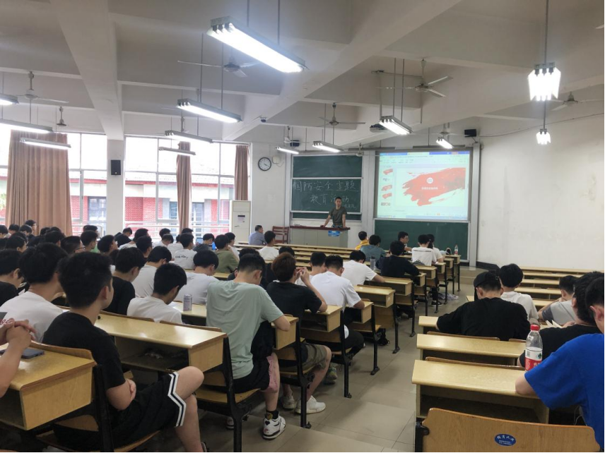 从戎报国,不负青春,契合党史学习进行时,经济与贸易学院于6月1日下午在二教302开展国防主题教育活动。人民武装部戴谋元老师、何熙老师莅临指导,学院党委副书记李曼老师,全体辅导员、全体适龄男生参加,院学工办主任蔡婕萍老师主持。