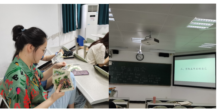 第三部分为写给五年后的自己。同学们在明信片上写下想对五年后的自己说的话,由班长温鹏同学收齐保管,而五年后是 tasexy
