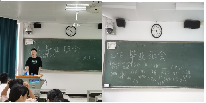 班会的最后,同学们领取了经济1702班的专属毕业照,互作了道别。经二大家庭由来自五湖四海的同学组成,最后大家也去往了五湖四海,但不管在哪,我们永远是湖大人,永远是经二的骄傲,前途似海,来日方长,我们会以梦为马,不负韶华。