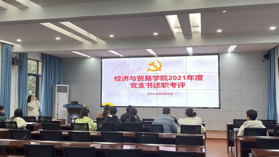 为持续推动全面从严治党向基层延伸,全面增强基层党组织政治功能和组织力,1月8日下午,经济与贸易学院分别在行政楼201、707召开2021年度师生党支部书记述职考评会议,学院党委书记祝树金、院长侯俊军、党委副书记李曼、副院长曹二保、副院长肖皓、副处级组织员刘周平出席。全体党支部书记依次进行述职,学院党委逐个听取党支部书记向党委述职报告并给予整改意见。随后学院党委将根据支部打分和党委听取报告形成的意见对所有党支部书记汇总评议,评议结果纳入下一学年党支部奖惩情况考虑范围。