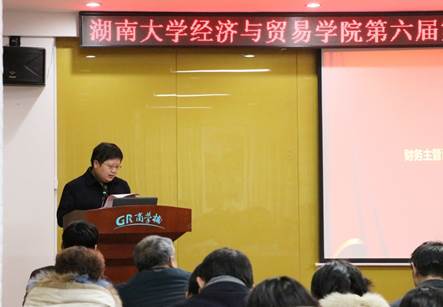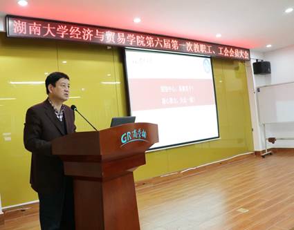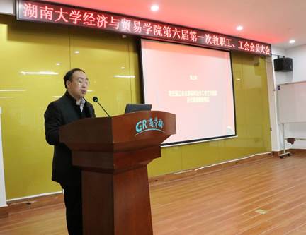 1月11日,经济与贸易学院六届一次教职工、工会会员大会召开。院党委书记郭平主持,院长许和连作学院工作报告,院工会主席祝树金作工会工作报告,财务主管肖力作财务工作报告。校工会常务副主席龚完全、财院校区党工委副书记黄红立出席并致辞,全体院领导、副处级组织员、教职工和工会会员、特邀代表和列席代表等70余人参加会议。