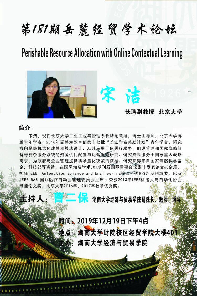 Jie Song, Peking University:Perishable Resource Allocation with Online Contextual Learning